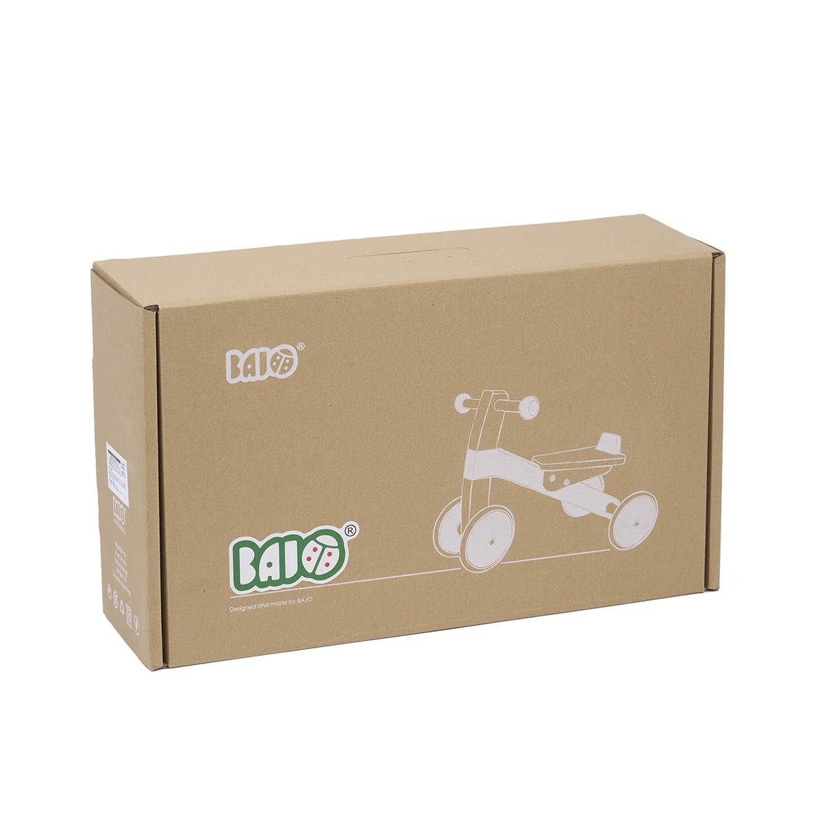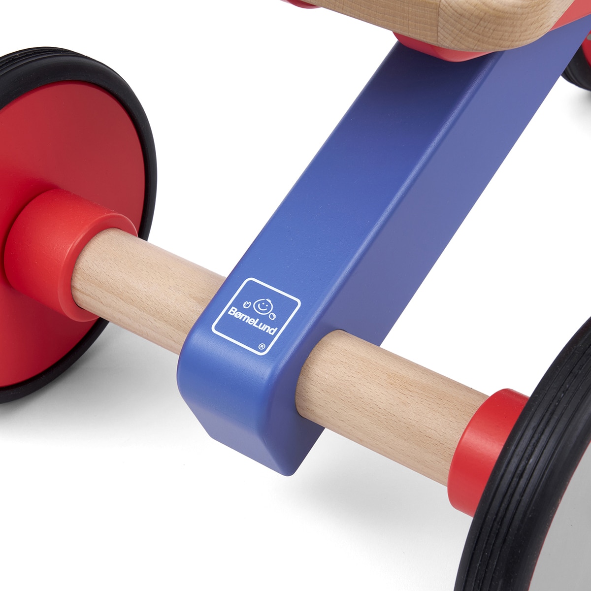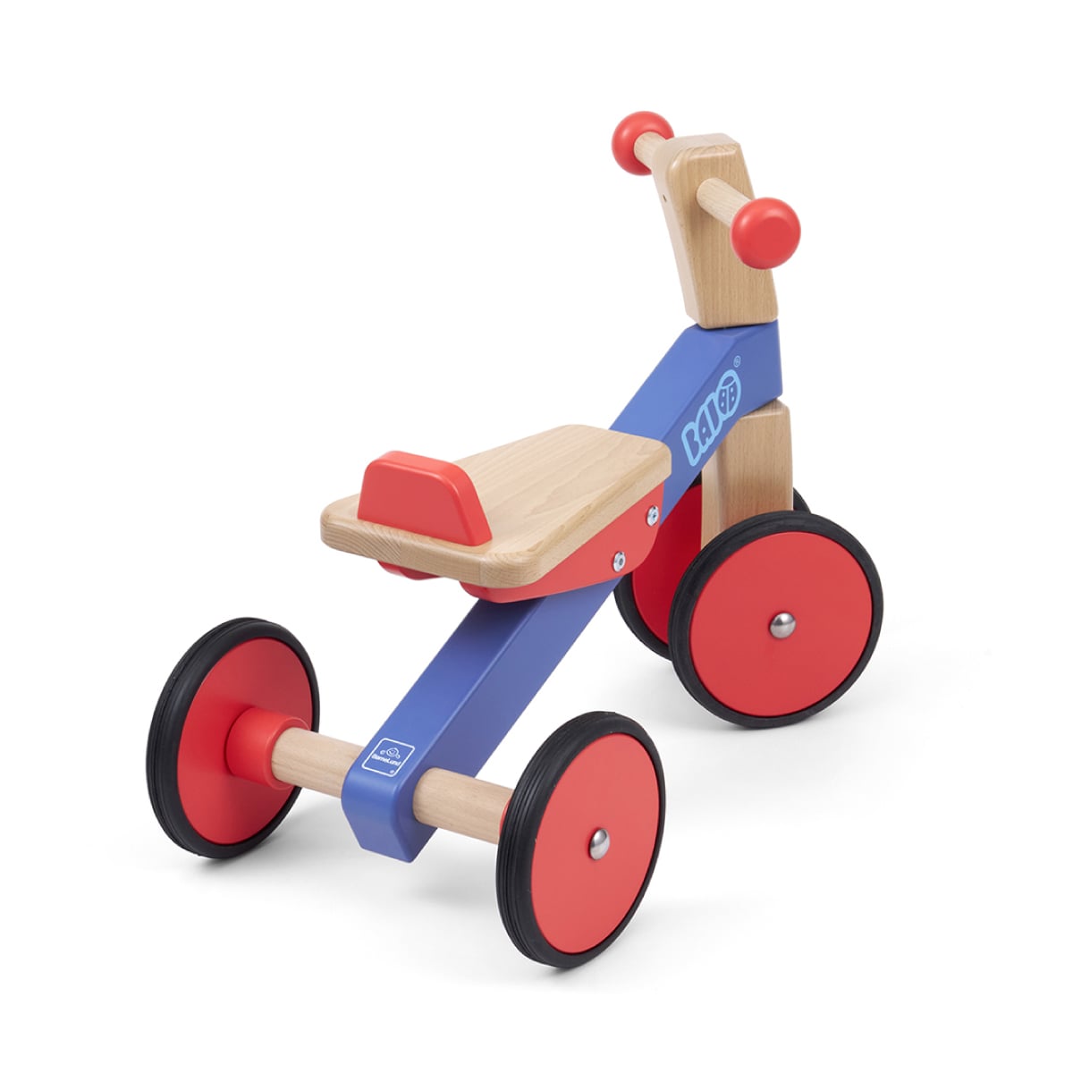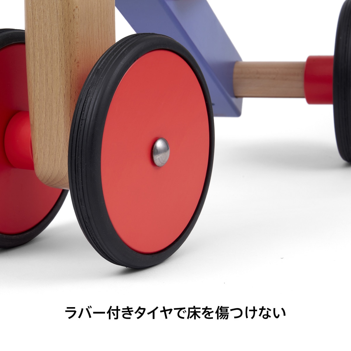 小さな子どもにとって自分のからだサイズの乗りものをはじめて操る感覚は冒険そのもの、大きくからだを動かすことはこのうえない喜び。しっかりとした重さのあるブナ材で倒れにくい安定感、自分で蹴ったぶんだけ前に進むからスピード調整もできます。