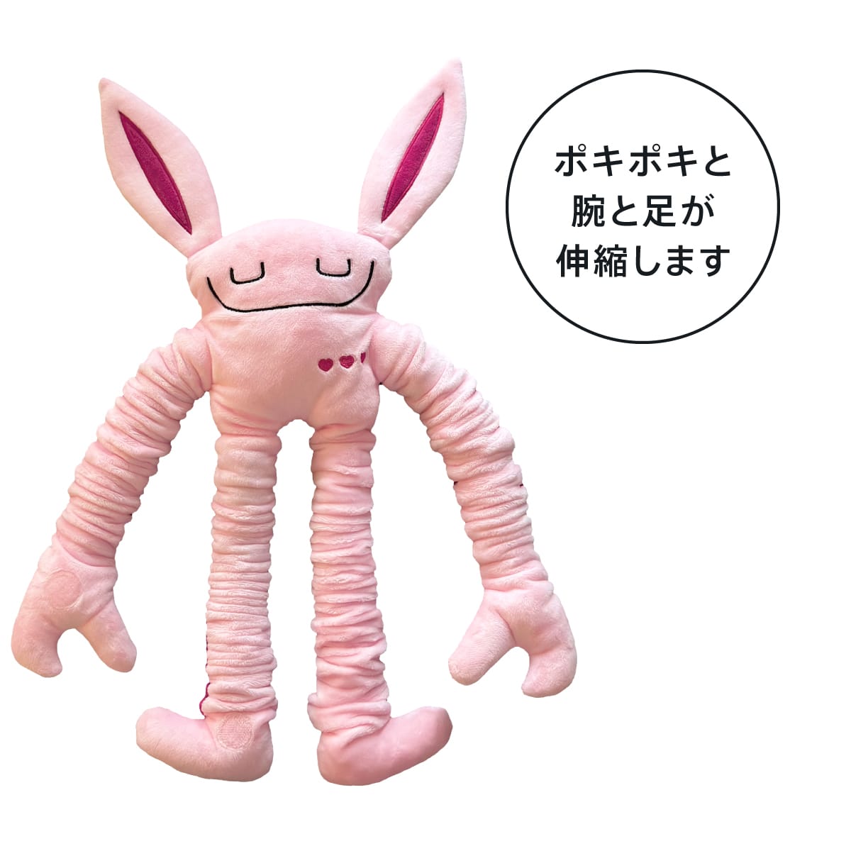 伸びる手足がおもしろい。好きなようにいじって、楽しめる抱きぬいぐるみ。