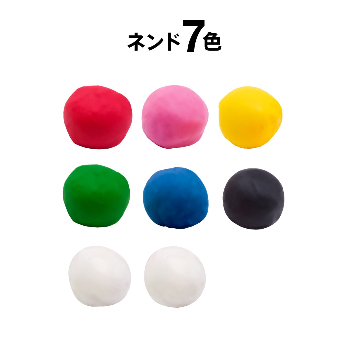 - ネンド玉7色8玉(赤・ピンク・黄・緑・青・黒・白)※白のみ2玉入り