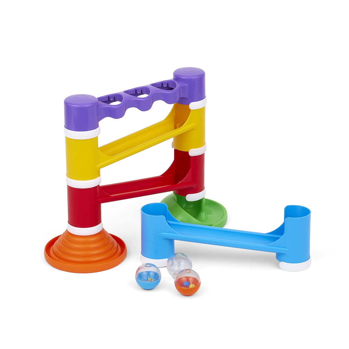 - ストレートレール(赤)×1、ストレートレール(黄)×1、ストレートレール(水)×1、 ベースパーツ(橙)×1 、 ボール受け(緑)×1、 ボールステーション(紫)×1、 コネクターC型×8、 ボール×3(直径4.5cm)