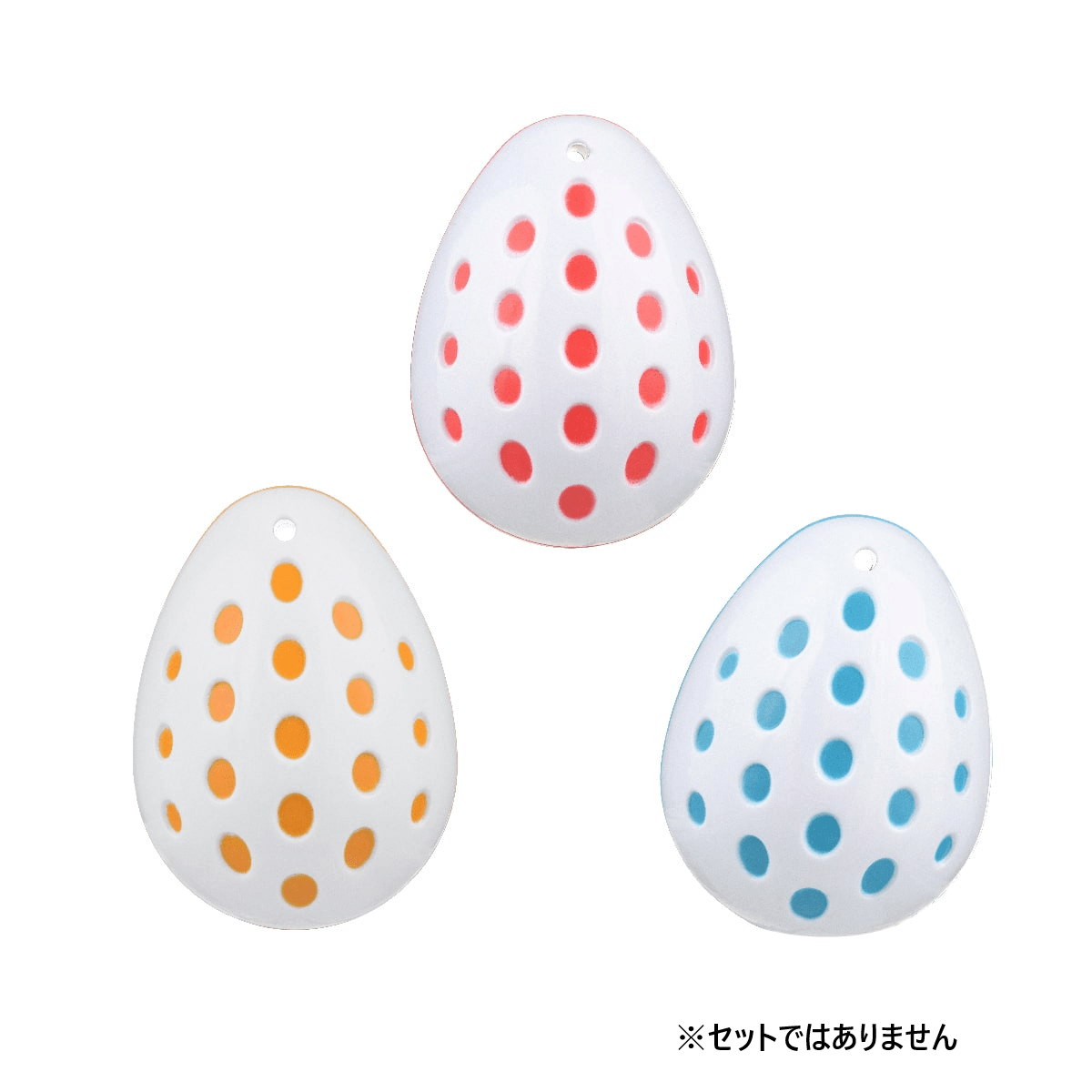 乳児が認識しやすい色鮮やかなタマゴ型のマラカスです。表面の水玉模様のへこみは、握った時に触感の刺激になります。少し揺らしただけでもやさしいビーズの音がします。2個用意して、左右の手に1個ずつ握りリズム遊びもおすすめ。右・左と交互に動かすことは、将来的に日常動作を習得する下地になります。