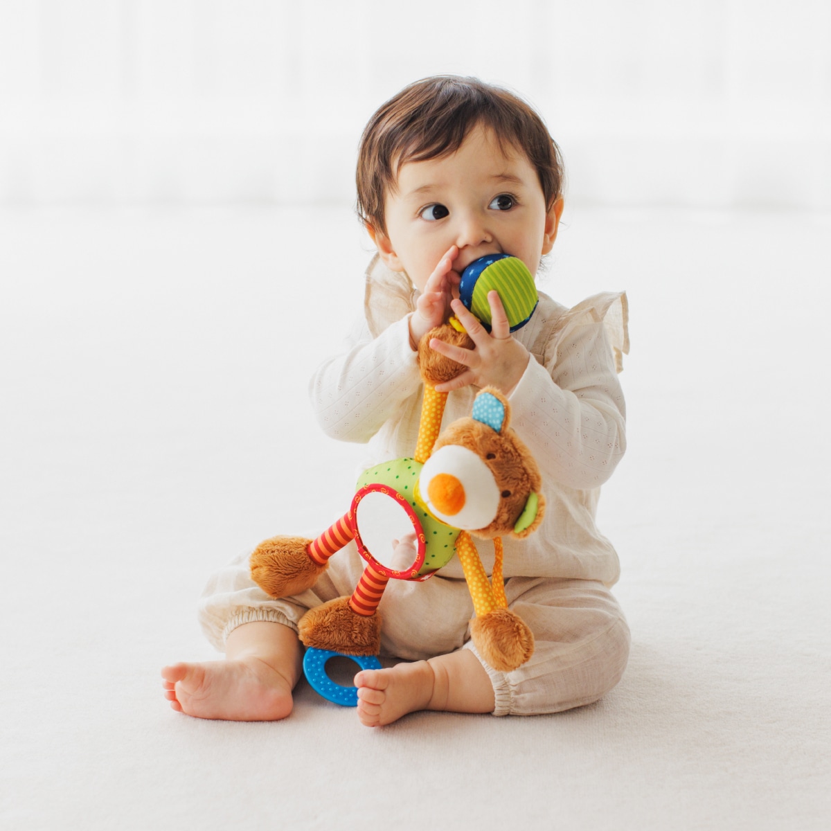 触って色々な感触を楽しんだり、鏡を覗いたり、カミカミしたり。お家でも、お出かけ先でも、購入してから長く楽しんで遊んでいます。