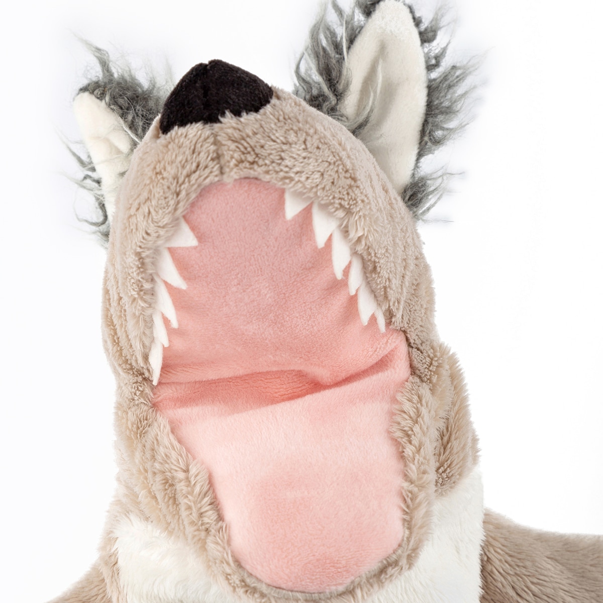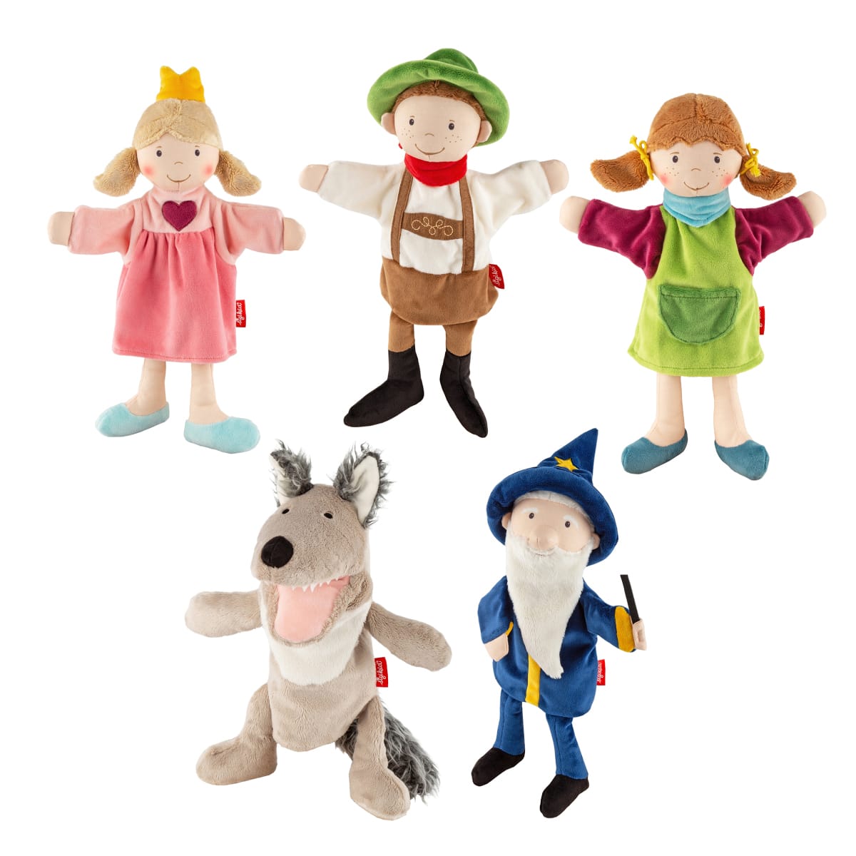 歩いたり、座ったりする様子も再現できる、足も付いているのが特徴のハンドパペット。人形の体全体を表現して遊ぶことができます。手を入れていろいろな動きや気持ちを表現できるパペットは、子どもの気持ちを表現する手助けとなり、年齢に応じてあそび方も広がります。