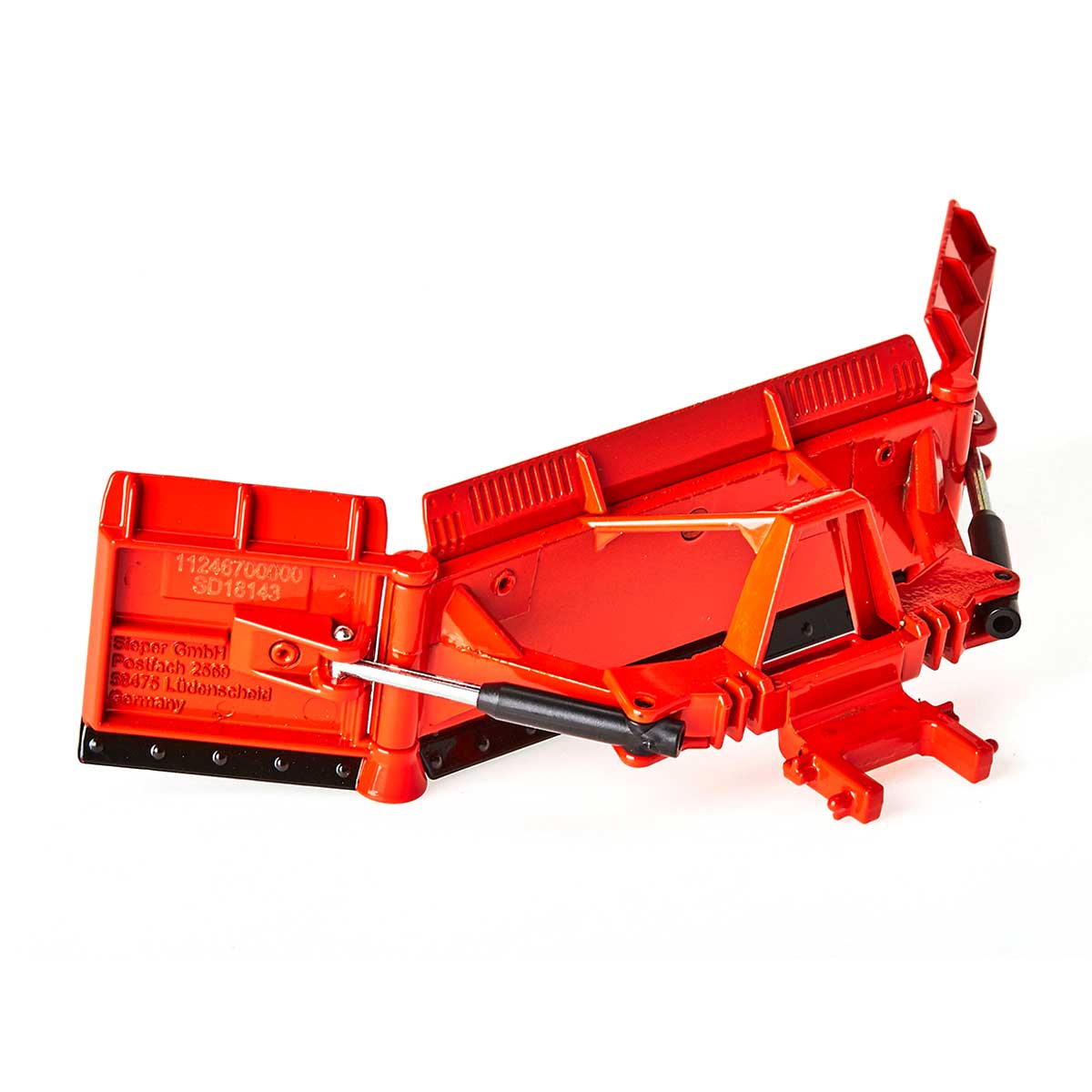 トウモロコシ用ベーラーはトラクターの前に取り付けて、穀物を押す農耕器具です。本体の左右が可動式で、穀物を押す範囲を自由自在に変えることができます。1:32の縮尺のトラクターに付けて遊べます。メーカー紹介