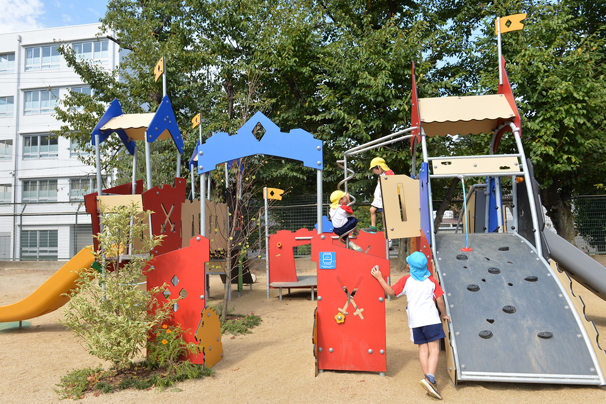 園庭のシンボルになっている、コンパン遊具のキャッスル