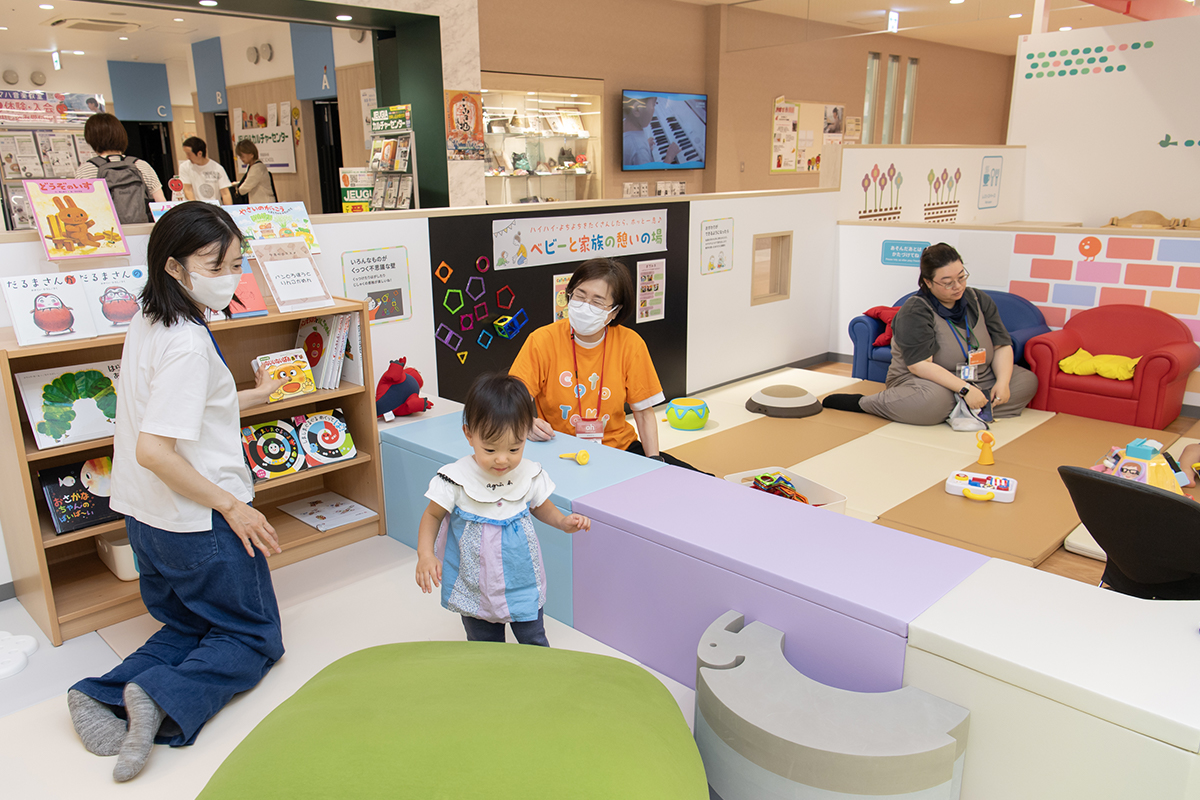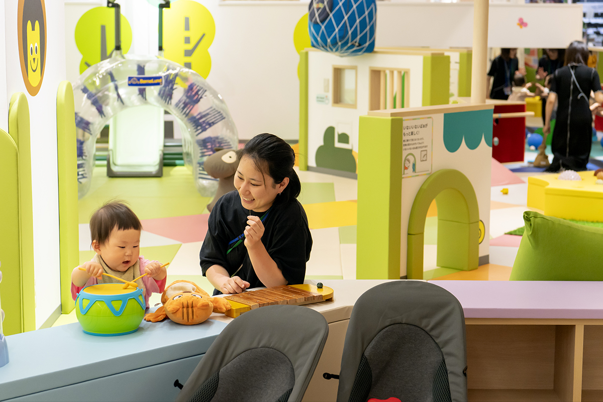 研修を受けた常駐スタッフが子どもの成長を見守り、遊び方提案や保護者とのコミュニケーションを図ることで、地域の子育てコミュニティとしての役割も果たしています。