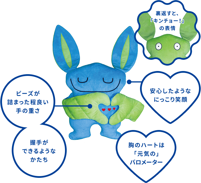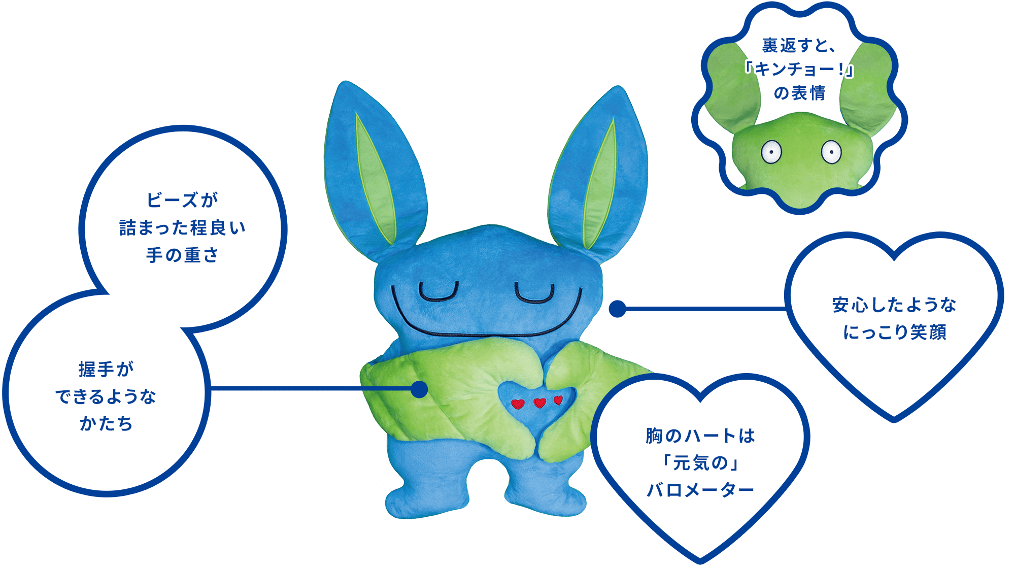 触れることで不安や緊張を和らげる、感覚と感情に寄り添う守り神のような抱きぬいぐるみです。